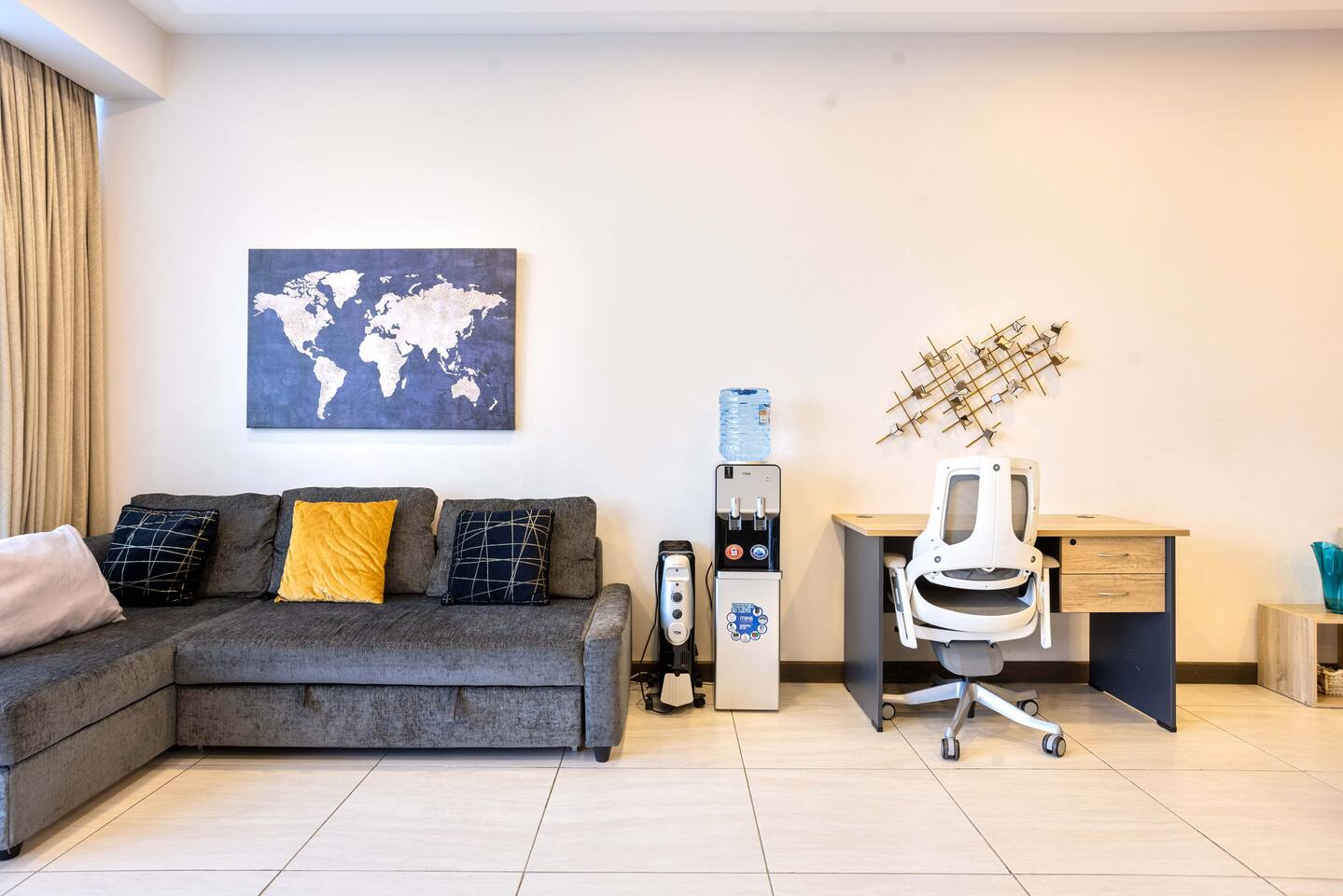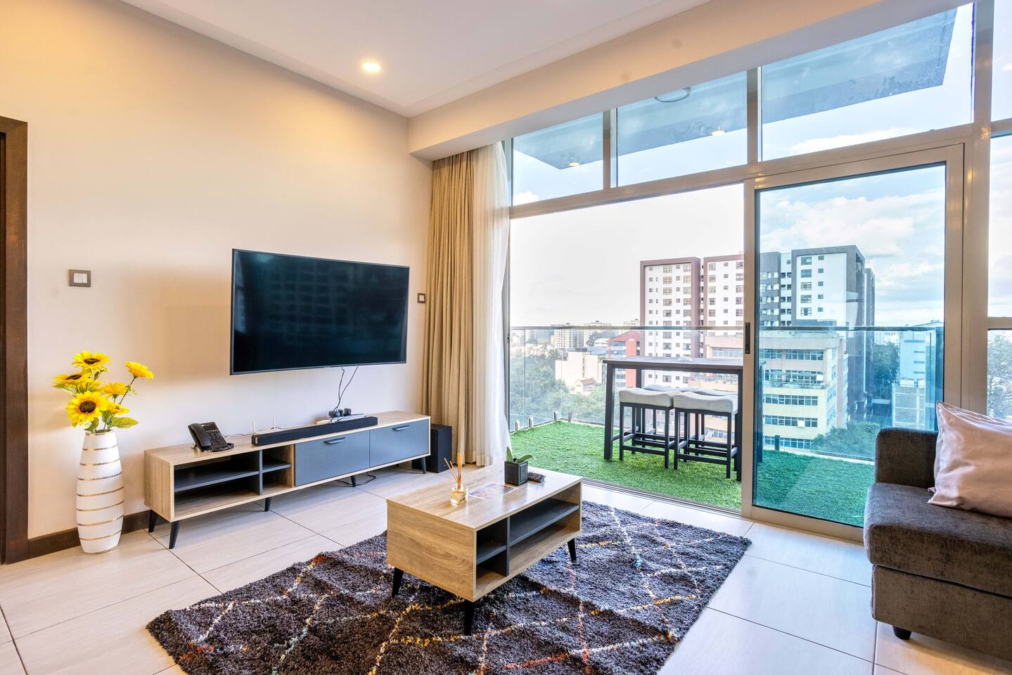 🧼 Complimentary cleaning is provided three times per week, ensuring the space remains fresh and tidy throughout your stay. 🛋️ All furniture is eco-friendly, crafted from sustainably sourced Mount Kenya wood, offering both comfort and environmental consciousness. Please Note: 🚫 No parties, loud gatherings, or unregistered overnight guests are allowed. 🚭 Smoking is not allowed indoors. Guests may use the balcony for smoking. 🐾 Pets are only allowed in the apartment after prior approval from the host 🛎️ Additional services such as airport transfers, or late check-out can be arranged upon request and may incur extra charges. - Maximum of 5 guests allowed. We kindly ask that you respect these rules to ensure a pleasant stay for everyone.