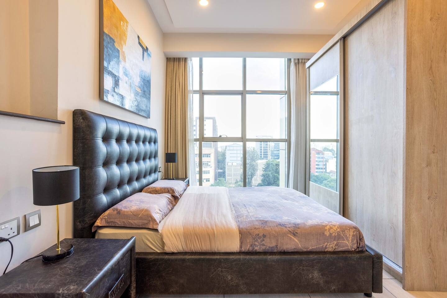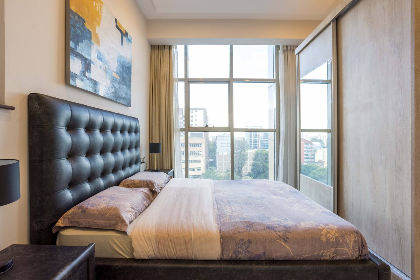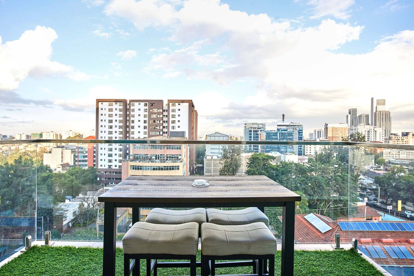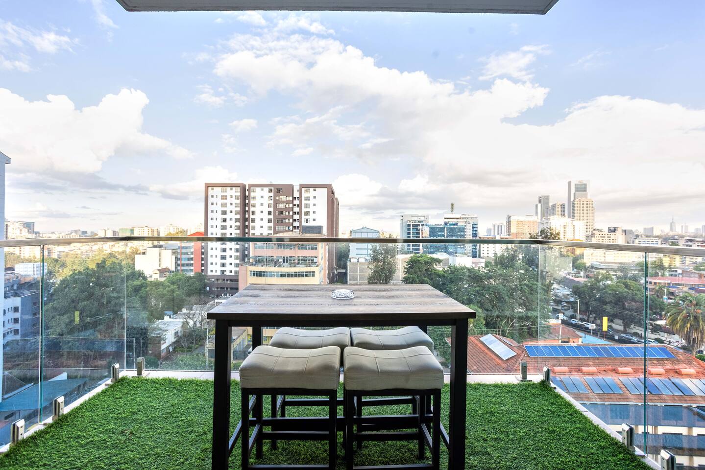 📍 Geographic Environment Located in the heart of Westlands, Nairobi, the apartment sits within Skynest Residences, a secure, upscale residential building completed in 2021. This neighborhood is known for its dynamic energy, upscale malls, embassies, international offices, and its proximity to Nairobi’s best cafés, nightlife, and fine dining. Skynest offers guests the perfect balance between quiet comfort and a vibrant urban lifestyle. 🏠 Property Description and Guest Access The 1-bedroom apartment spans 100m² and is elegantly decorated with curated art and eco-friendly furniture. The apartment has a fully equipped kitchen, a Samsung 55” Smart TV with Netflix, and a Bluetooth sound bar with subwoofer. The bedroom offers a plush queen-sized bed, while two sofabeds convert into queen and single beds, allowing the space to host up to five guests comfortably. Guests can also enjoy a private balcony, modern bathroom with rain shower, and complimentary mineral water, shower products, tea, and coffee. The building includes a rooftop with a heated infinity pool, gym, sauna, steam room, squash court, cocktail bar, supermarket and indoor/outdoor lounge. 🏪 Nearby Amenities Just minutes away on foot are Sarit Center, Westgate Mall, and the GTC complex. Nairobi’s most sought-after restaurants, supermarkets, coffee shops, gyms, pharmacies, and banks are all easily accessible. The neighborhood is also ideal for business travelers due to its proximity to the UN Blue Zone, international organizations, and embassies. ✨ Key Features - Heated rooftop infinity pool with city views 🏊 - Free secure parking and intercom guest access 🚘 - Cleaning 3x per week included 🧼 - 1 En-suite Bedrooms with plush bedding 🛏️ - IKEA sofas convert to queen and single beds 🛋️ - Spacious rain showers and quality toiletries 🛁 - Eco-friendly furniture from Mt. Kenya wood 🌿 - Gym, sauna, steam room & squash court 🏋️ - On-site supermarket, café & restaurant 🛍️ - 55” Samsung Smart TV with Netflix 📺 🚗 Transportation Details The building has fast, well-maintained elevators and offers secure, free underground parking. With direct access to Waiyaki Way and the Nairobi Expressway, guests can reach JKIA International Airport in under 25 minutes. Taxis, Uber, Bolt, and local delivery apps are readily available. On-site security and a reception intercom system offer 24/7 safety and convenience for visitor and delivery confirmation.