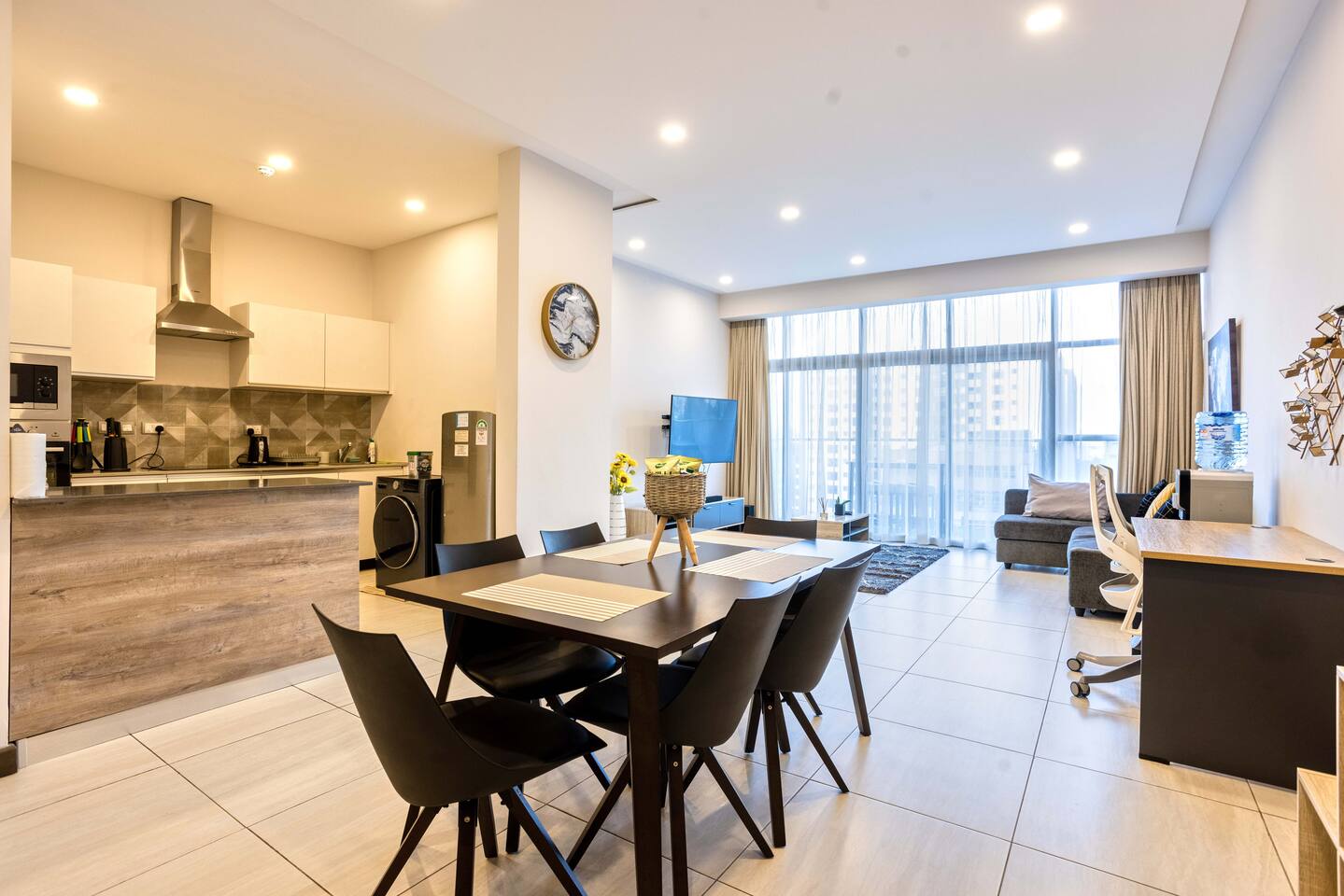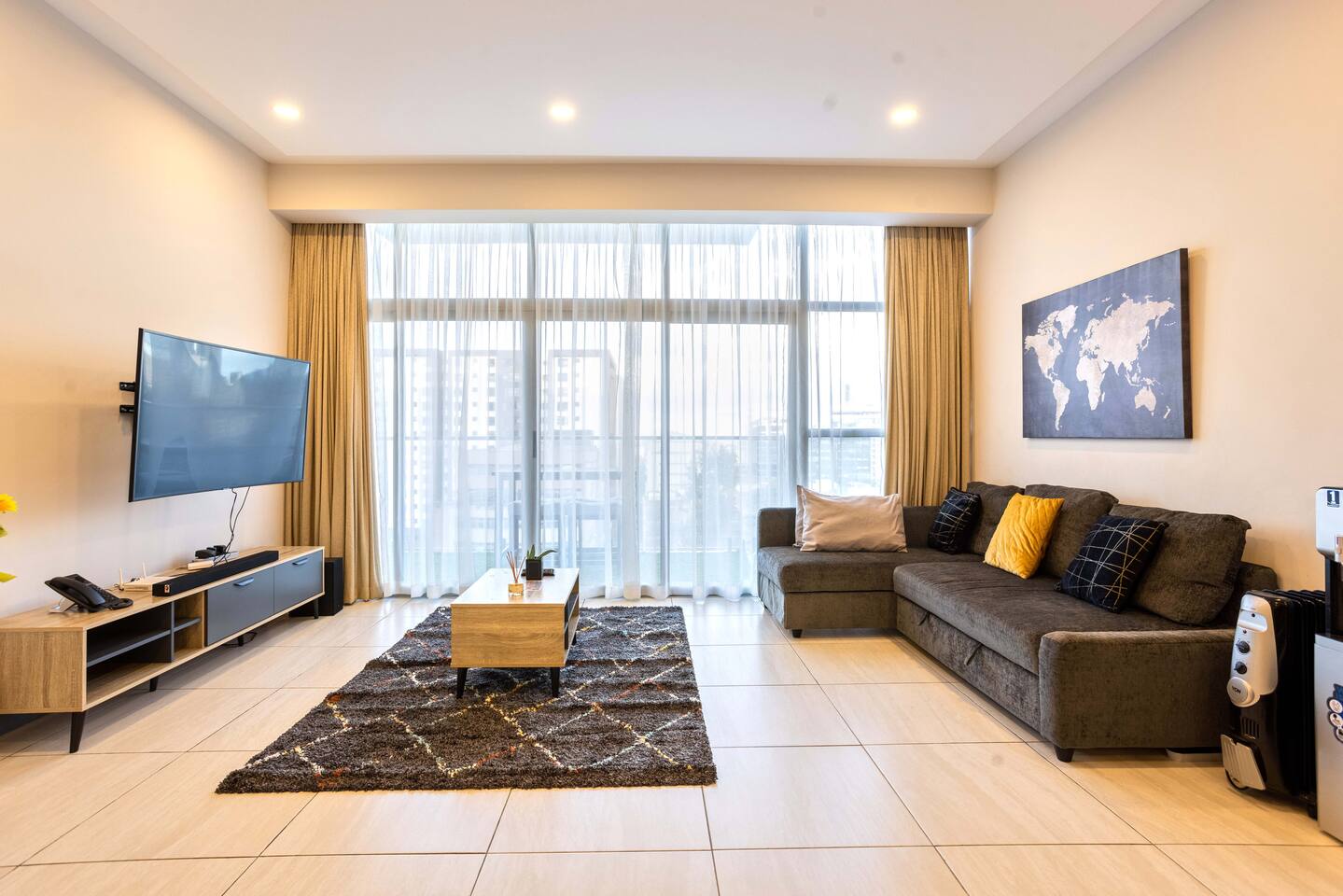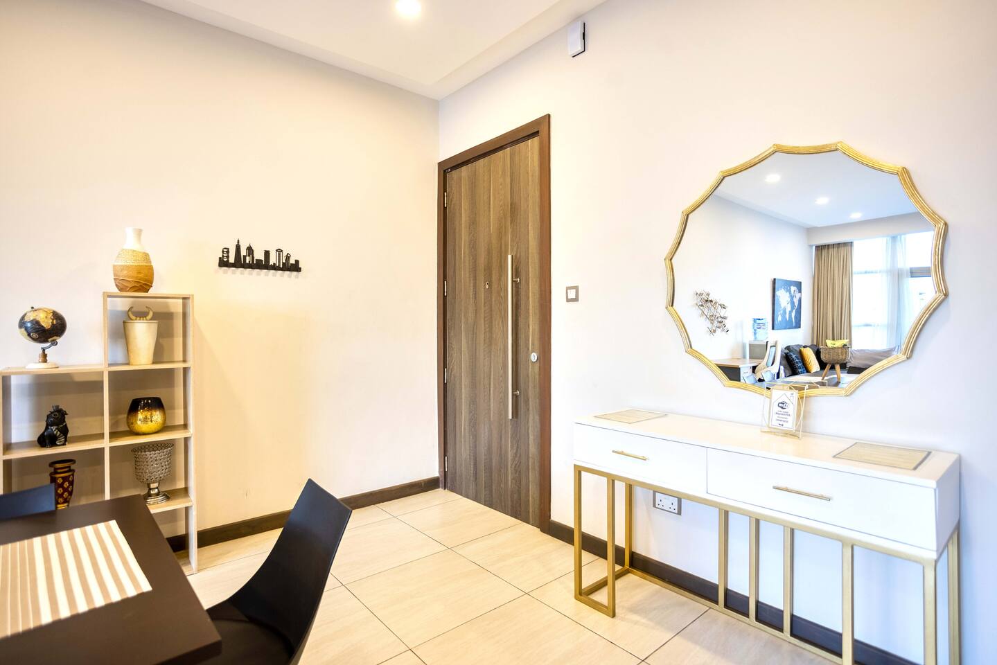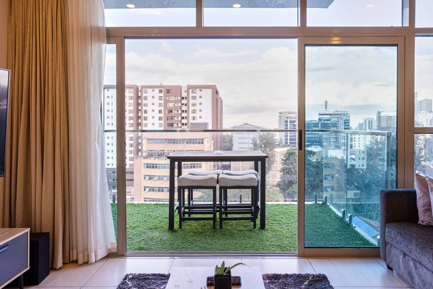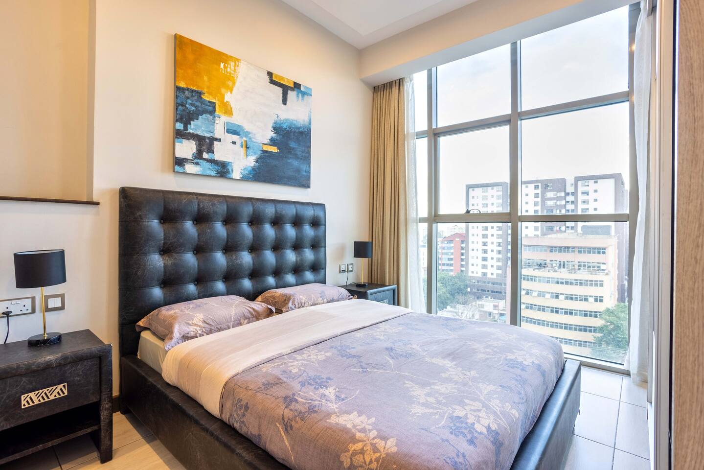 📍 Geographic Environment Located in the heart of Westlands, Nairobi, the apartment sits within Skynest Residences, a secure, upscale residential building completed in 2021. This neighborhood is known for its dynamic energy, upscale malls, embassies, international offices, and its proximity to Nairobi’s best cafés, nightlife, and fine dining. Skynest offers guests the perfect balance between quiet comfort and a vibrant urban lifestyle. 🏠 Property Description and Guest Access The 1-bedroom apartment spans 100m² and is elegantly decorated with curated art and eco-friendly furniture. The apartment has a fully equipped kitchen, a Samsung 55” Smart TV with Netflix, and a Bluetooth sound bar with subwoofer. The bedroom offers a plush queen-sized bed, while two sofabeds convert into queen and single beds, allowing the space to host up to five guests comfortably. Guests can also enjoy a private balcony, modern bathroom with rain shower, and complimentary mineral water, shower products, tea, and coffee. The building includes a rooftop with a heated infinity pool, gym, sauna, steam room, squash court, cocktail bar, supermarket and indoor/outdoor lounge. 🏪 Nearby Amenities Just minutes away on foot are Sarit Center, Westgate Mall, and the GTC complex. Nairobi’s most sought-after restaurants, supermarkets, coffee shops, gyms, pharmacies, and banks are all easily accessible. The neighborhood is also ideal for business travelers due to its proximity to the UN Blue Zone, international organizations, and embassies. ✨ Key Features - Heated rooftop infinity pool with city views 🏊 - Free secure parking and intercom guest access 🚘 - Cleaning 3x per week included 🧼 - 1 En-suite Bedrooms with plush bedding 🛏️ - IKEA sofas convert to queen and single beds 🛋️ - Spacious rain showers and quality toiletries 🛁 - Eco-friendly furniture from Mt. Kenya wood 🌿 - Gym, sauna, steam room & squash court 🏋️ - On-site supermarket, café & restaurant 🛍️ - 55” Samsung Smart TV with Netflix 📺 🚗 Transportation Details The building has fast, well-maintained elevators and offers secure, free underground parking. With direct access to Waiyaki Way and the Nairobi Expressway, guests can reach JKIA International Airport in under 25 minutes. Taxis, Uber, Bolt, and local delivery apps are readily available. On-site security and a reception intercom system offer 24/7 safety and convenience for visitor and delivery confirmation.
