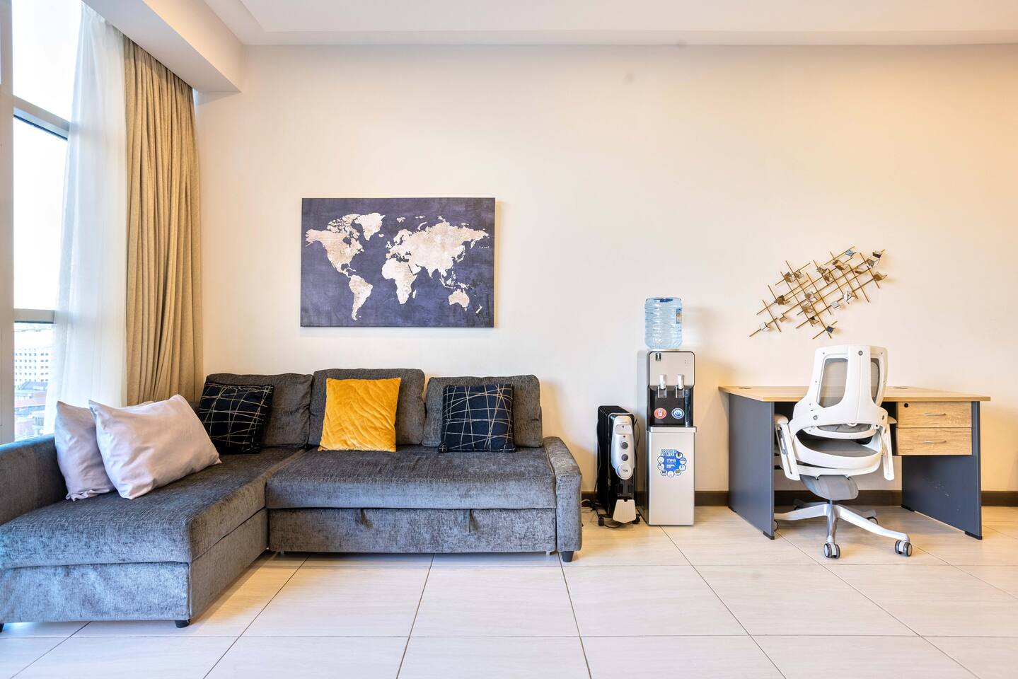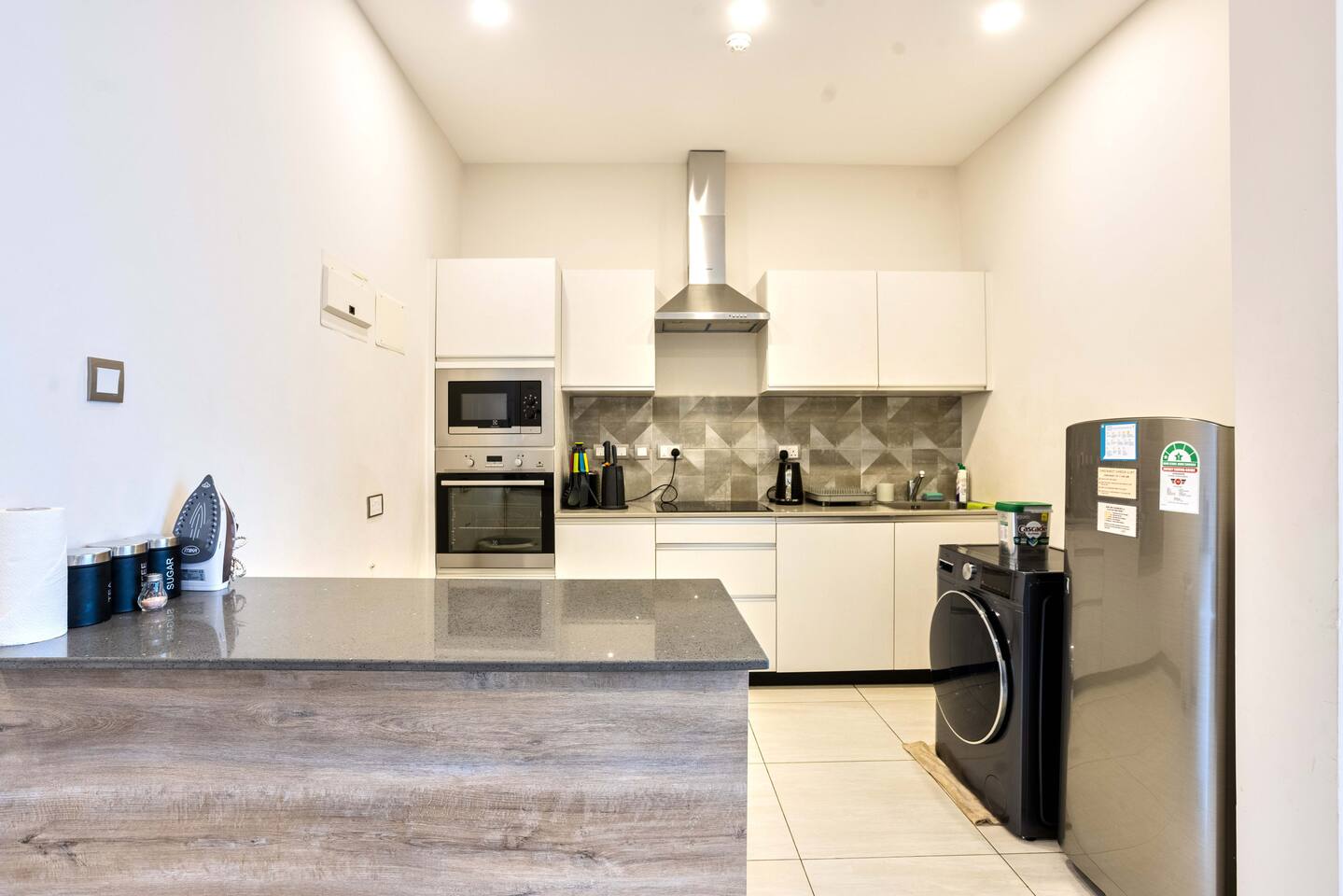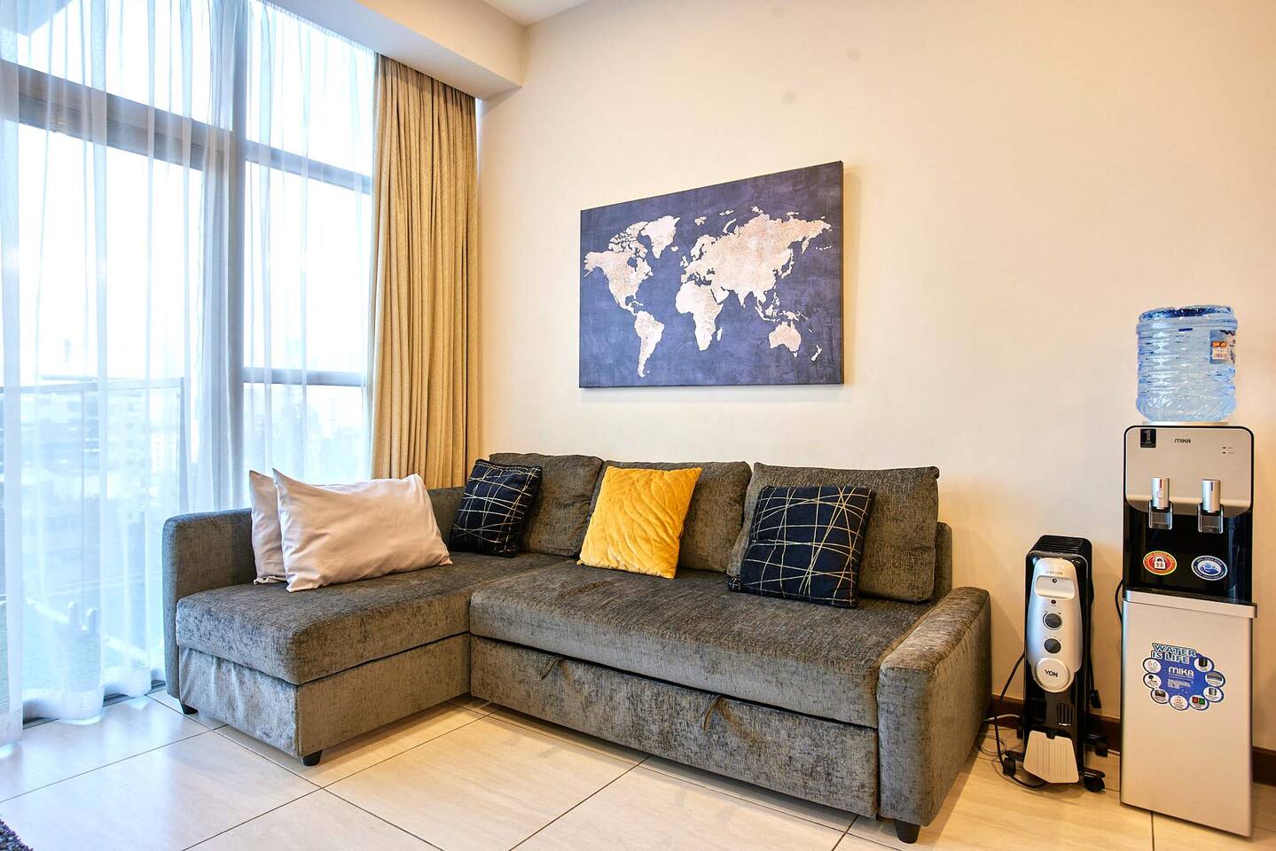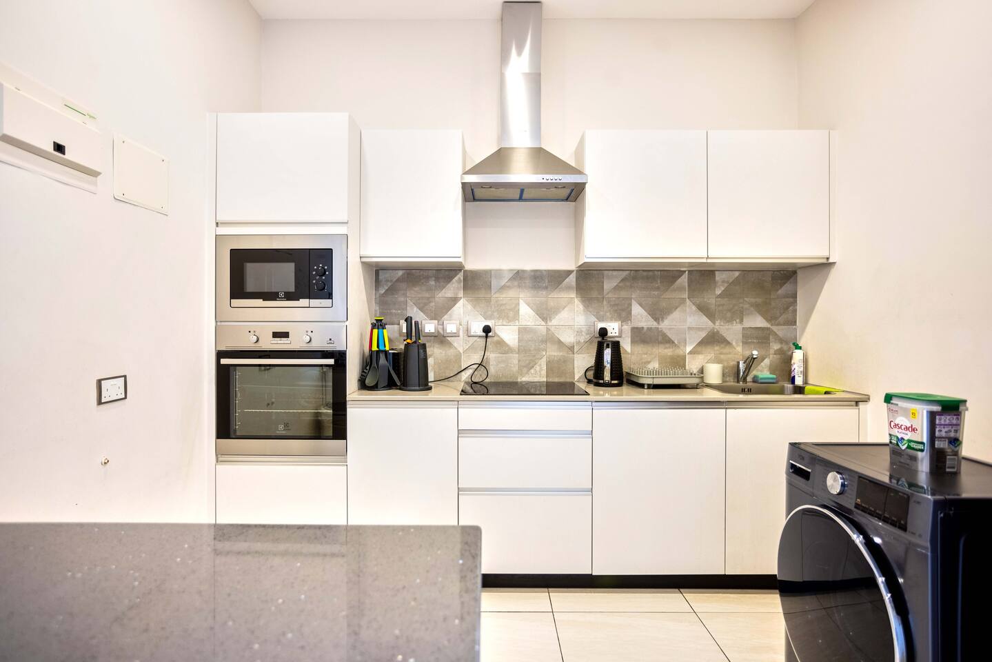 📍 Geographic Environment Located in the heart of Westlands, Nairobi, the apartment sits within Skynest Residences, a secure, upscale residential building completed in 2021. This neighborhood is known for its dynamic energy, upscale malls, embassies, international offices, and its proximity to Nairobi’s best cafés, nightlife, and fine dining. Skynest offers guests the perfect balance between quiet comfort and a vibrant urban lifestyle. 🏠 Property Description and Guest Access The 1-bedroom apartment spans 100m² and is elegantly decorated with curated art and eco-friendly furniture. The apartment has a fully equipped kitchen, a Samsung 55” Smart TV with Netflix, and a Bluetooth sound bar with subwoofer. The bedroom offers a plush queen-sized bed, while two sofabeds convert into queen and single beds, allowing the space to host up to five guests comfortably. Guests can also enjoy a private balcony, modern bathroom with rain shower, and complimentary mineral water, shower products, tea, and coffee. The building includes a rooftop with a heated infinity pool, gym, sauna, steam room, squash court, cocktail bar, supermarket and indoor/outdoor lounge. 🏪 Nearby Amenities Just minutes away on foot are Sarit Center, Westgate Mall, and the GTC complex. Nairobi’s most sought-after restaurants, supermarkets, coffee shops, gyms, pharmacies, and banks are all easily accessible. The neighborhood is also ideal for business travelers due to its proximity to the UN Blue Zone, international organizations, and embassies. ✨ Key Features - Heated rooftop infinity pool with city views 🏊 - Free secure parking and intercom guest access 🚘 - Cleaning 3x per week included 🧼 - 1 En-suite Bedrooms with plush bedding 🛏️ - IKEA sofas convert to queen and single beds 🛋️ - Spacious rain showers and quality toiletries 🛁 - Eco-friendly furniture from Mt. Kenya wood 🌿 - Gym, sauna, steam room & squash court 🏋️ - On-site supermarket, café & restaurant 🛍️ - 55” Samsung Smart TV with Netflix 📺 🚗 Transportation Details The building has fast, well-maintained elevators and offers secure, free underground parking. With direct access to Waiyaki Way and the Nairobi Expressway, guests can reach JKIA International Airport in under 25 minutes. Taxis, Uber, Bolt, and local delivery apps are readily available. On-site security and a reception intercom system offer 24/7 safety and convenience for visitor and delivery confirmation.